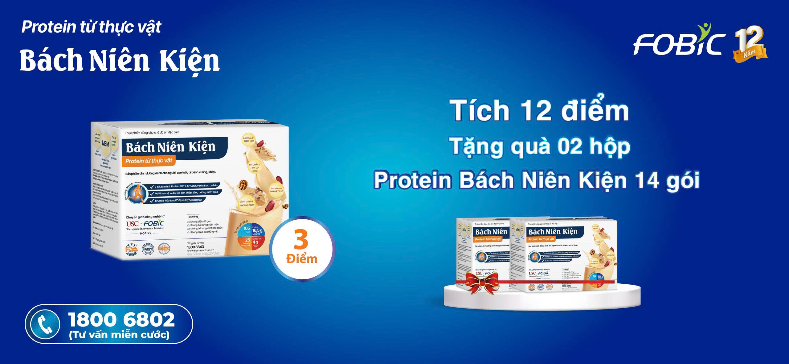 + Hoặc khi tích đủ 8 điểm, quý khách được tặng 2 hộp Protein từ thực vật Bách Niên Kiện 4 gói - dinh dưỡng cho người bị đau nhức xương khớp, tổng trị giá 370.000đ.